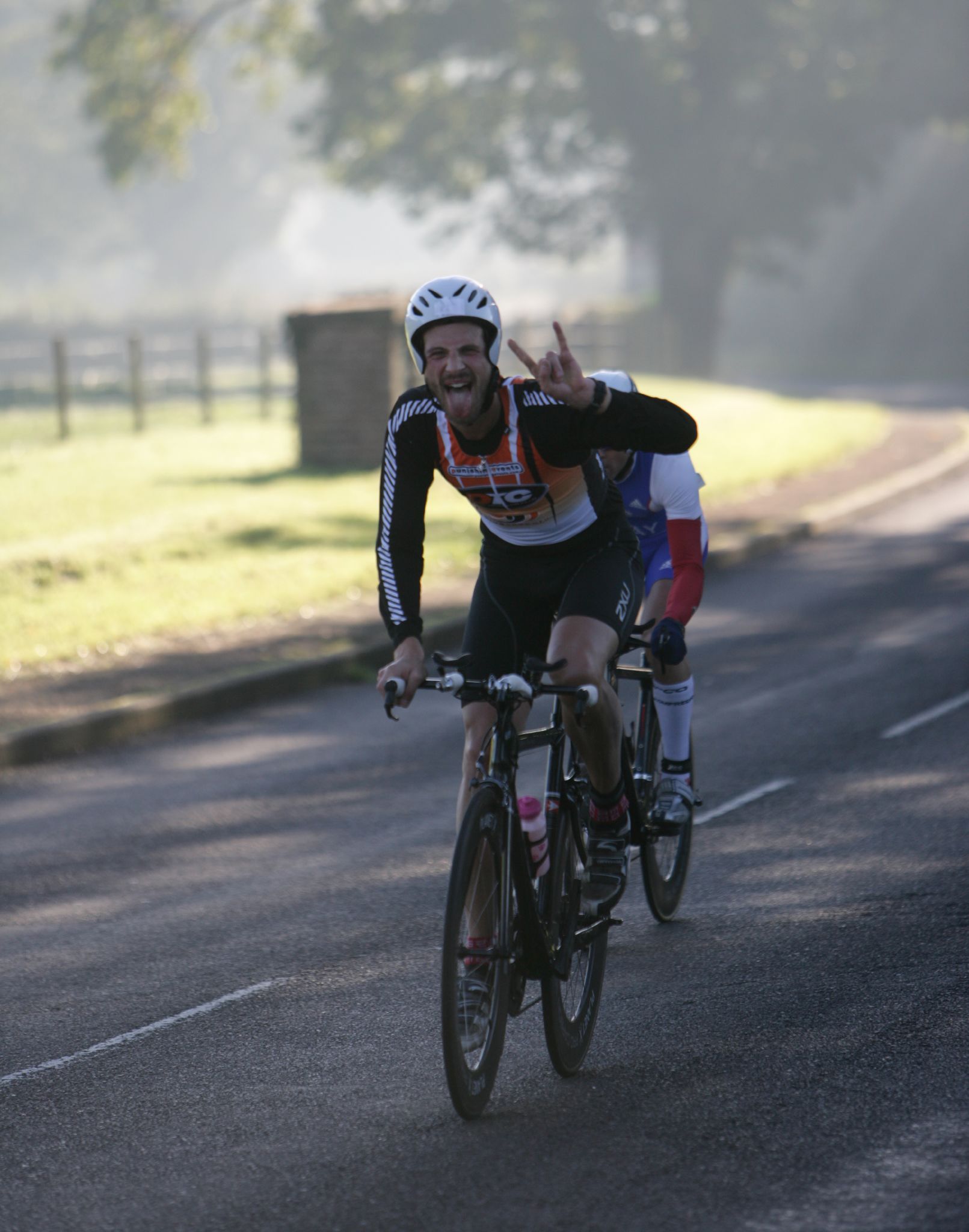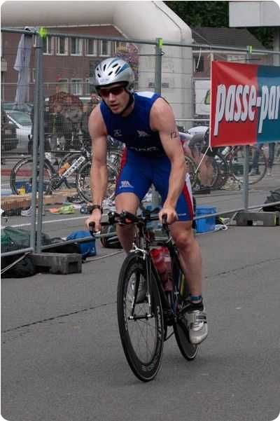“In June 2003 I did my first ever triathlon at Ongar leisure centre. I remember half way through racking my bike this strange looking bloke with blond hair put his bike next to mine. I was 6th, but he won the race – his name, Daz Carter !”